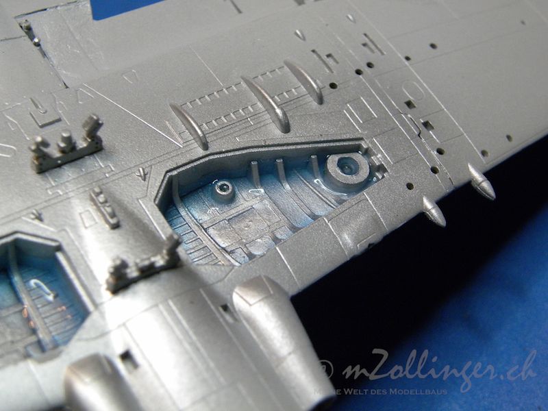 Die Decals sind auf einer Schicht Future aufgebracht. Nach einem Einsatz von Micro Sol werden diese nachträglich noch einmal mit einer Schicht Future versiegelt und sind bereit für die Alterung. Die Panellines sind mit dem neuen Produkt von Tamiya "panel line accent colour" hervorgehoben worden. Die Anwendung ist denkbar einfach und geht von der Hand.