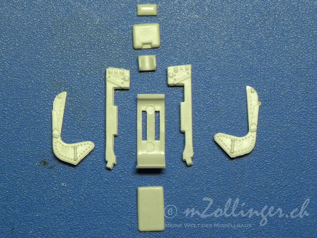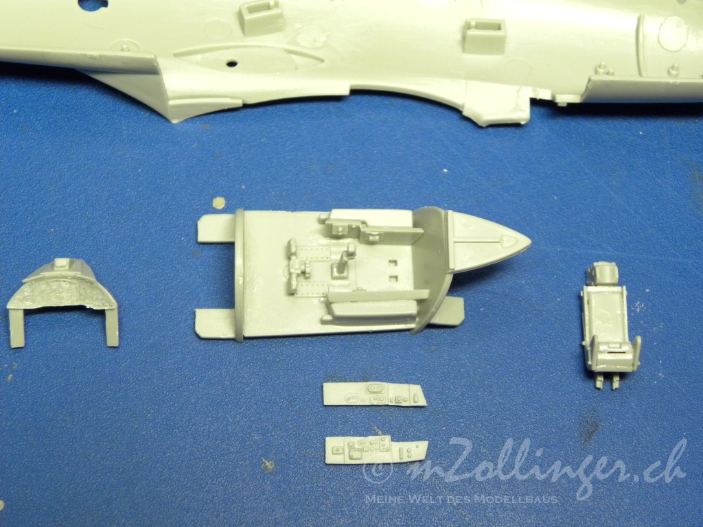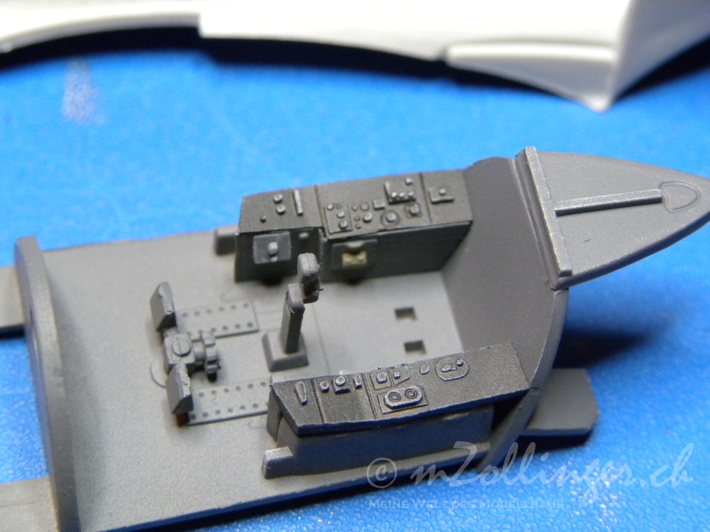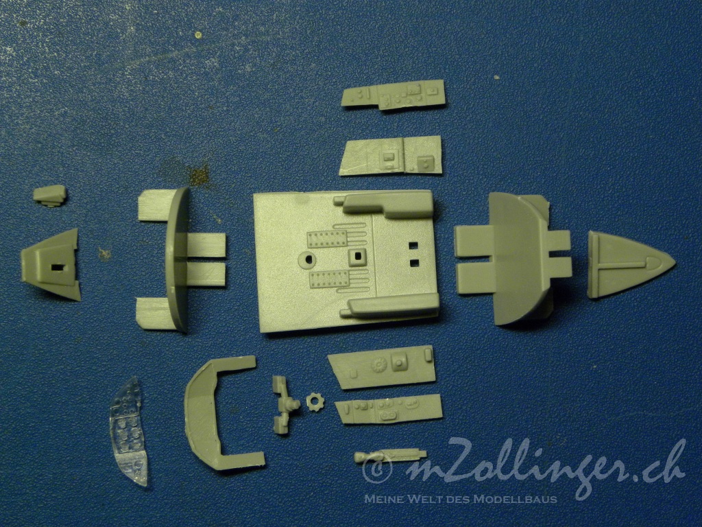Der erste Probebau des Cockpits. Bis jetzt passt alles gut zusammen. Die Detaillierung ist erstaunlich für diesen Massstab. Ätzteile sind nicht zwingend notwendig. Cockpit nochmals in seinen Einzelteilen